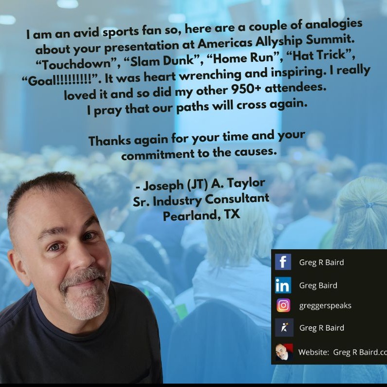 With his exceptional storytelling, humor, and enthusiasm, Greg lights the way for becoming a positive force within the community, advocating for compassion and demonstrating how individuals can enact change in their own lives and the lives of those around them. His talks emphasize the importance of being allies and mentors in our communities.
